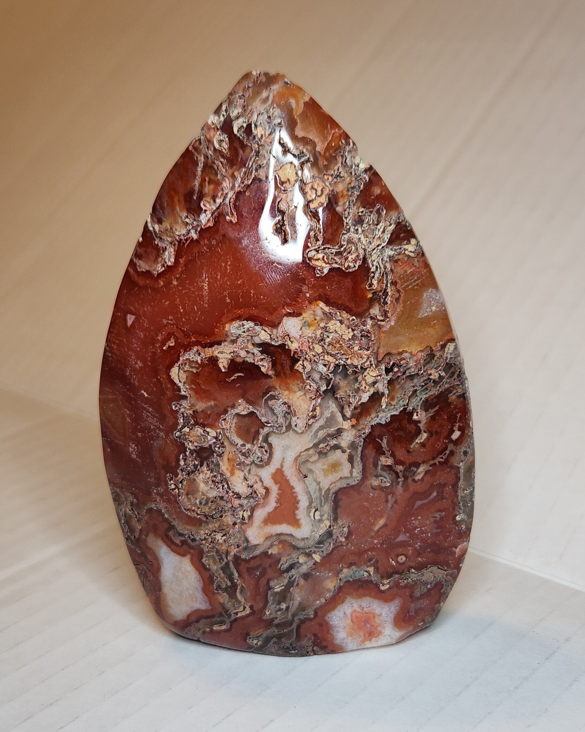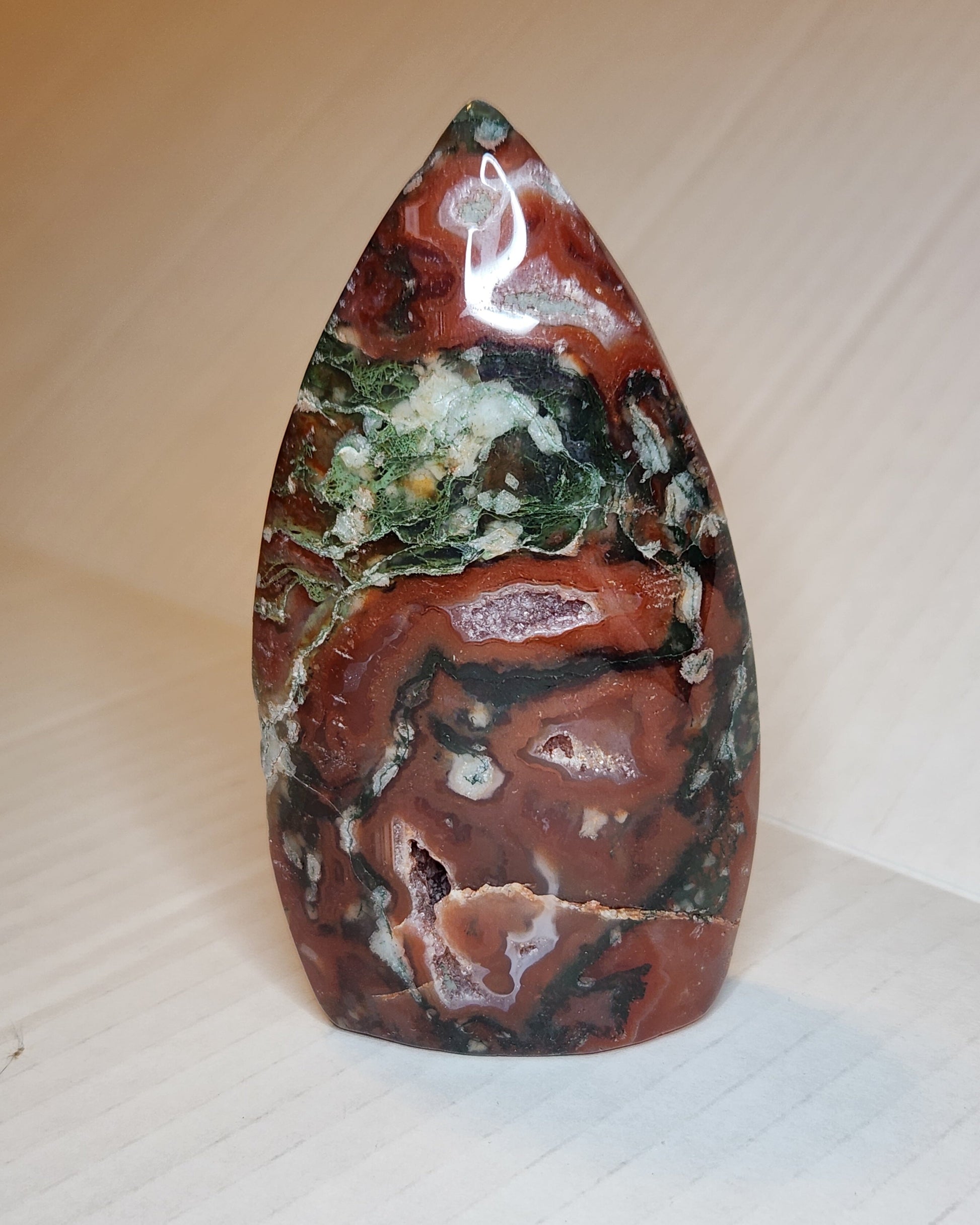 Carnelian X Moss Agate is a stone for self-confidence and grounding.