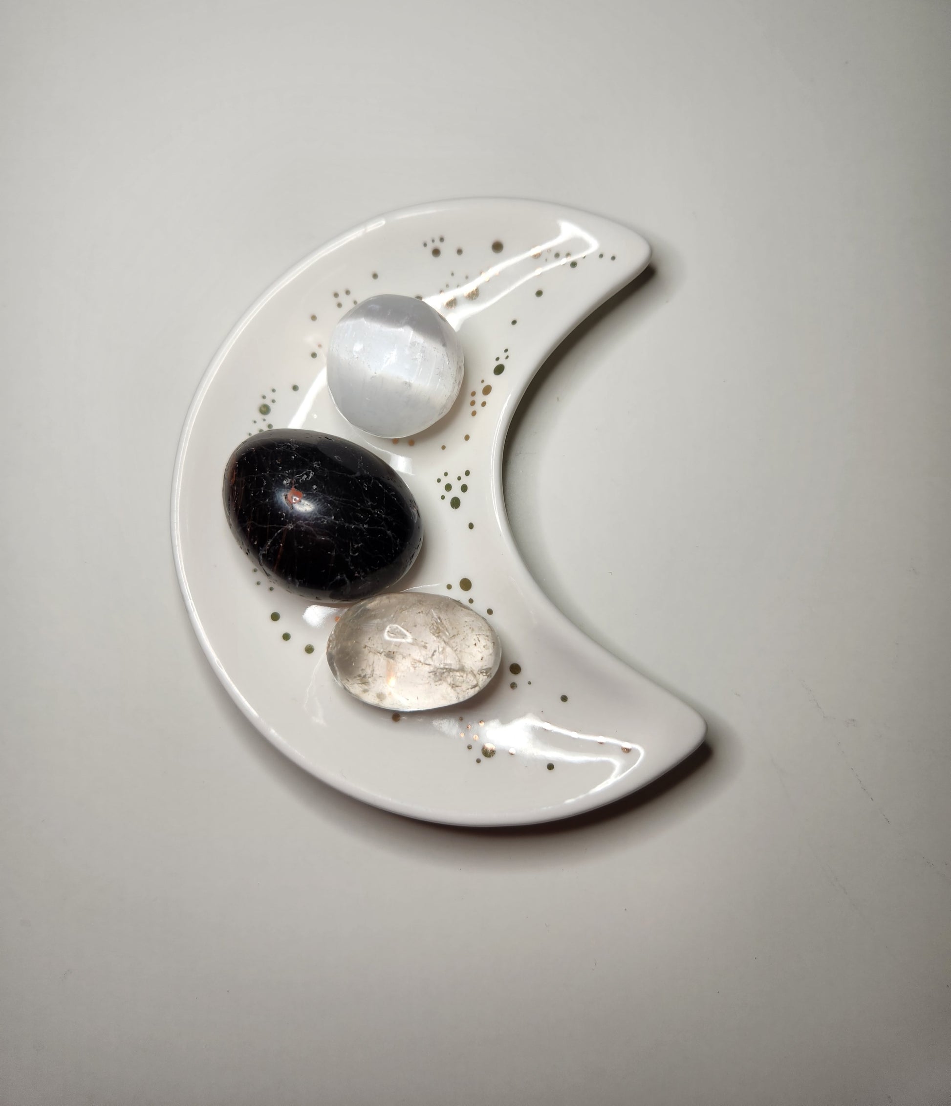 This bundle includes 3 crystals (Black Tourmaline, Selenite, and Clear Quartz) and comes with pink Himalayan salt for protection and blocking negative energy.