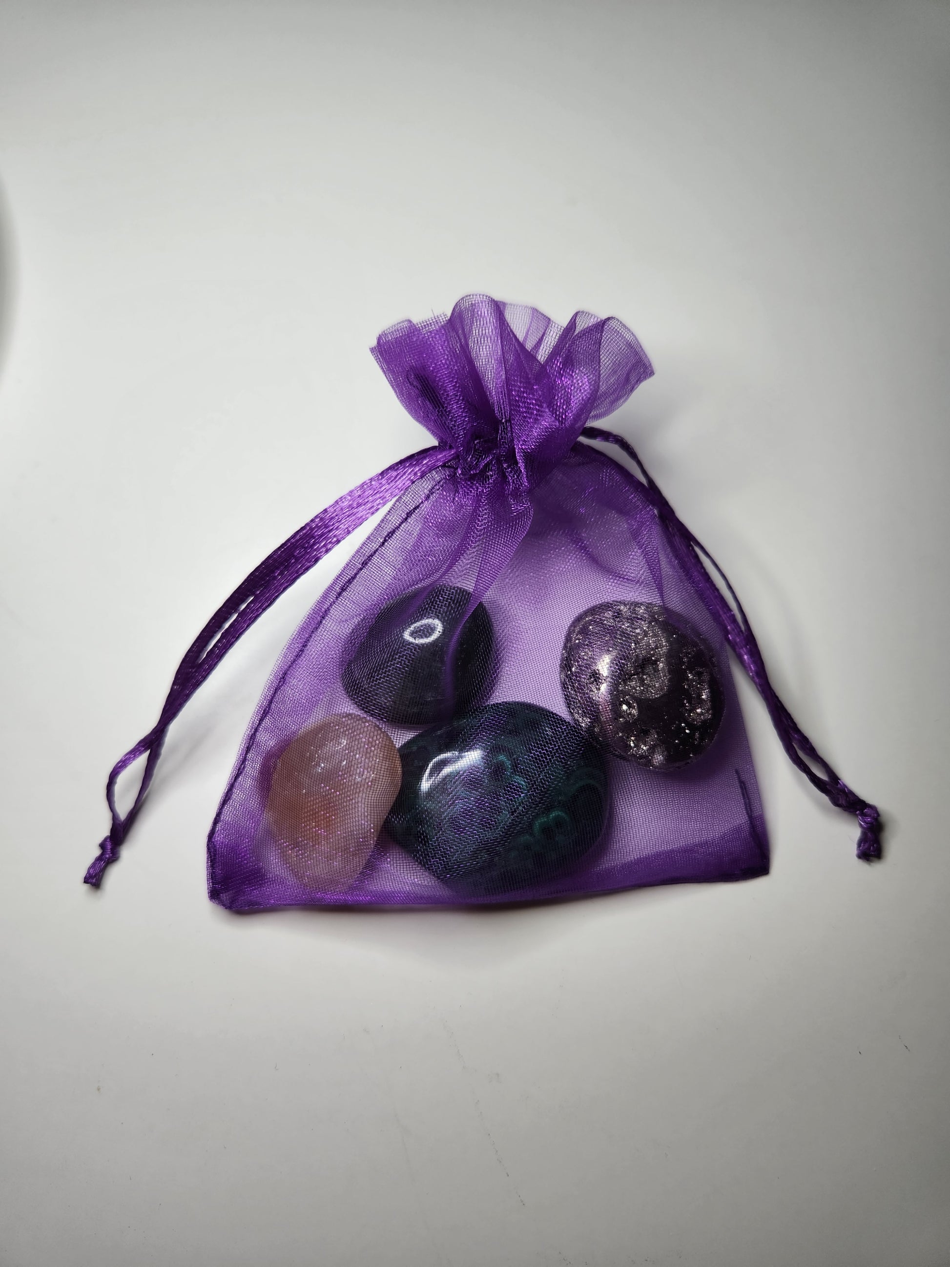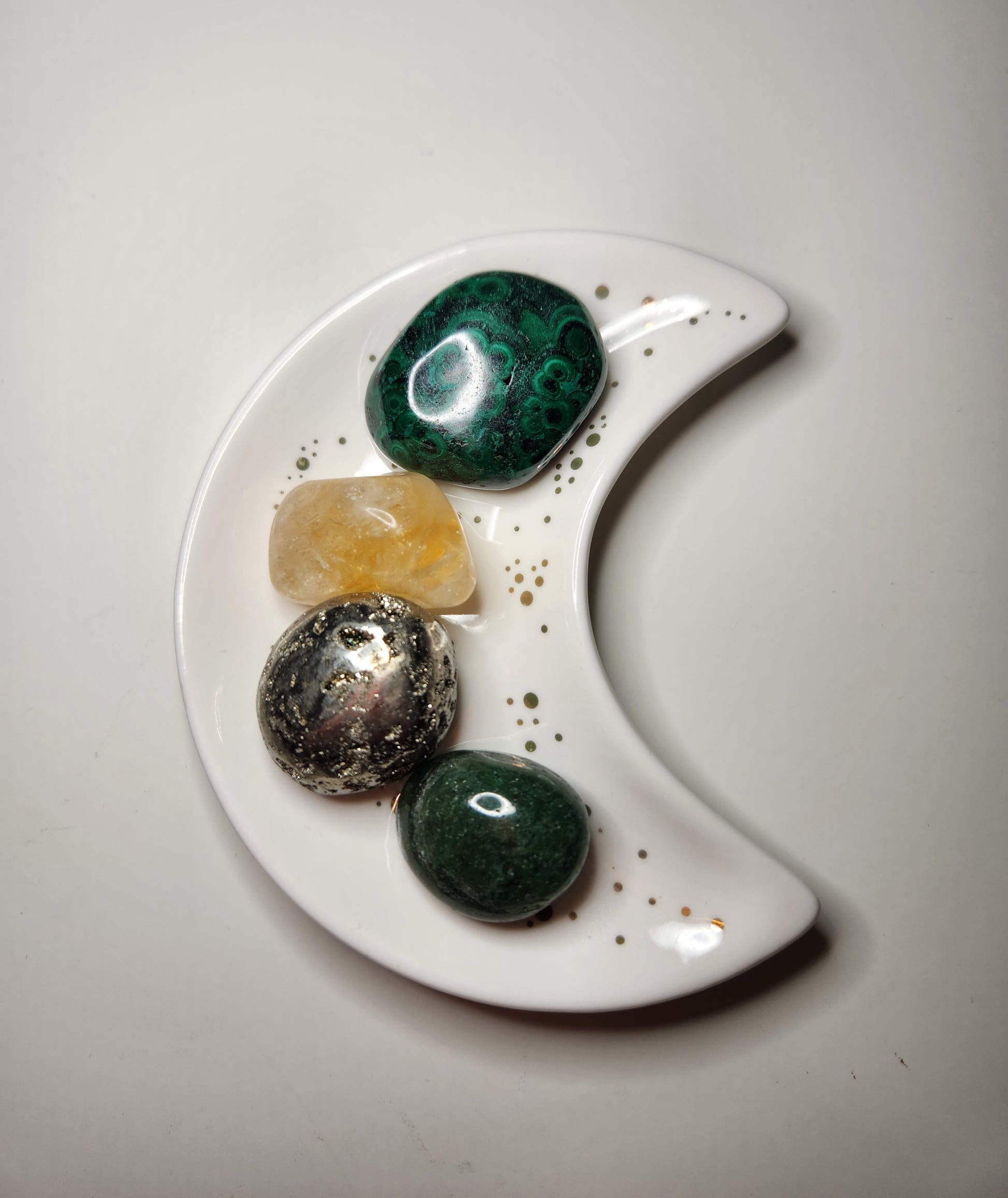 This bundle includes 4 crystals (Malachite, Pyrite, Citrine, and Green Aventurine) and comes with basil to represent and attract abundance.